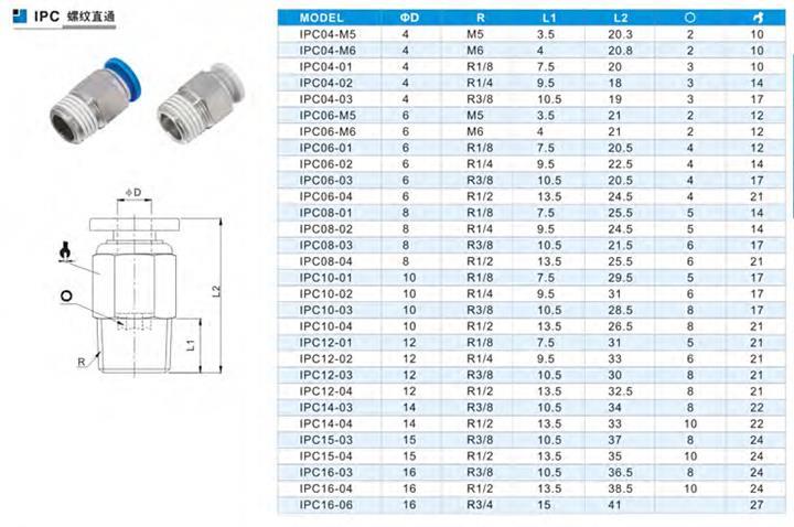 产品详情:山西乔尔亚IPC直通迅速插入式连接器型号如下: 质量保证,欢迎接洽!更多详实信息咨询: